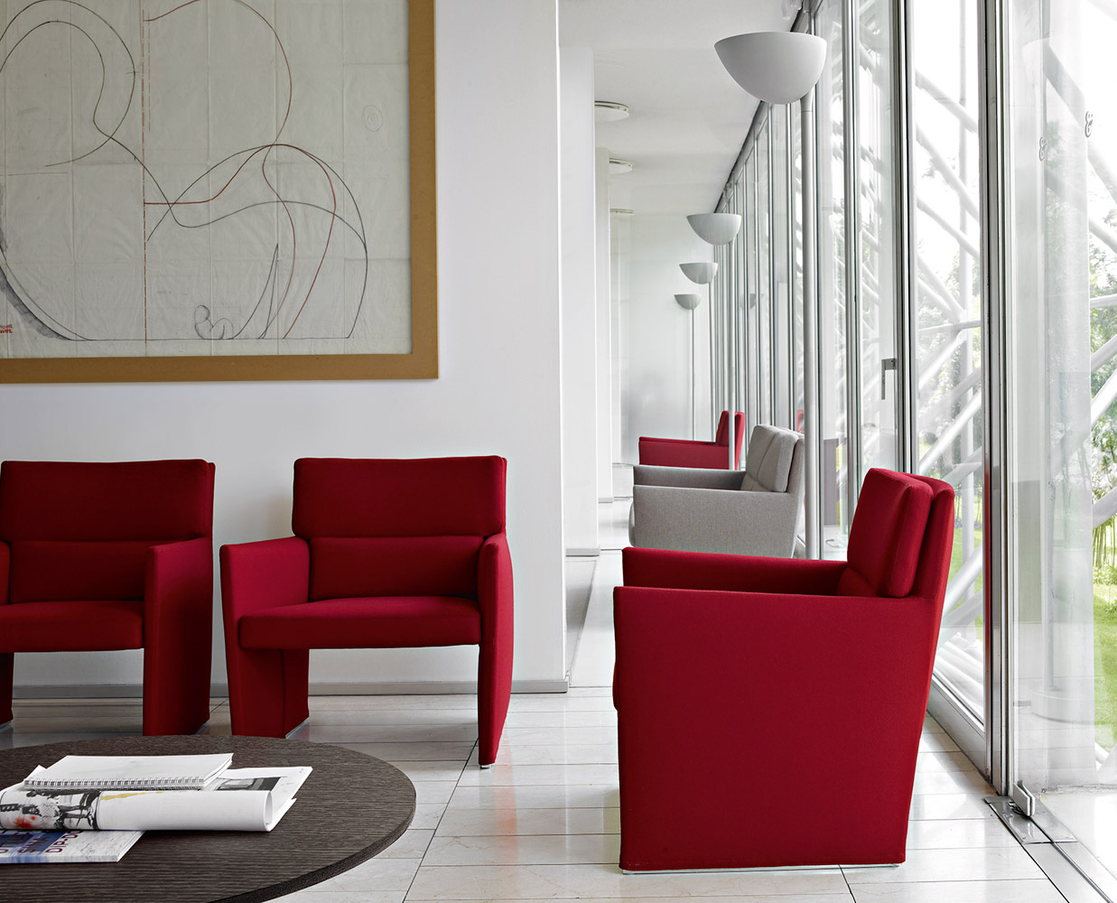 對于這個項目,Chipperfield特別注重尋找多功能、足夠結(jié)實(shí)的座椅,它既能滿足不同的使用需要,同時也能傳遞一種精致奢華的感覺。這個項目計劃用皮革作為博物館座椅(museum seating)的飾面。這項研究一直與Chipperfield熱衷探索的另一個主題結(jié)合在一起;利用先進(jìn)的工業(yè)生產(chǎn)技術(shù),以及用于輕盈和動態(tài)結(jié)構(gòu)上的飾面部件,獲得舒適而柔軟的座椅。