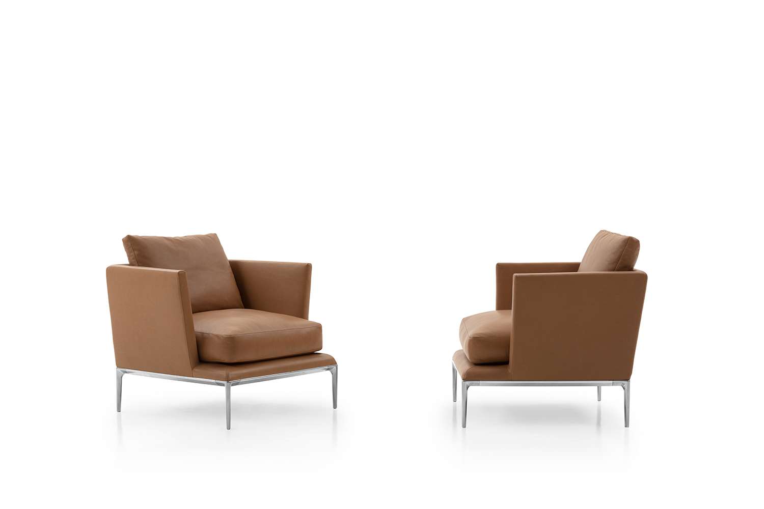The latest addition to the B&B Atoll seating range is this new small armchair. Agile and elevated in design, its thin metal legs evoke the style of the sofa and are ideally complemented by the characteristic shape of the cushions, which harmonise linearity with softness. The backrest and seat are characterised by two soft cushions that rest on a slightly inclined frame, providing the ideal balance between comfort and functionality.