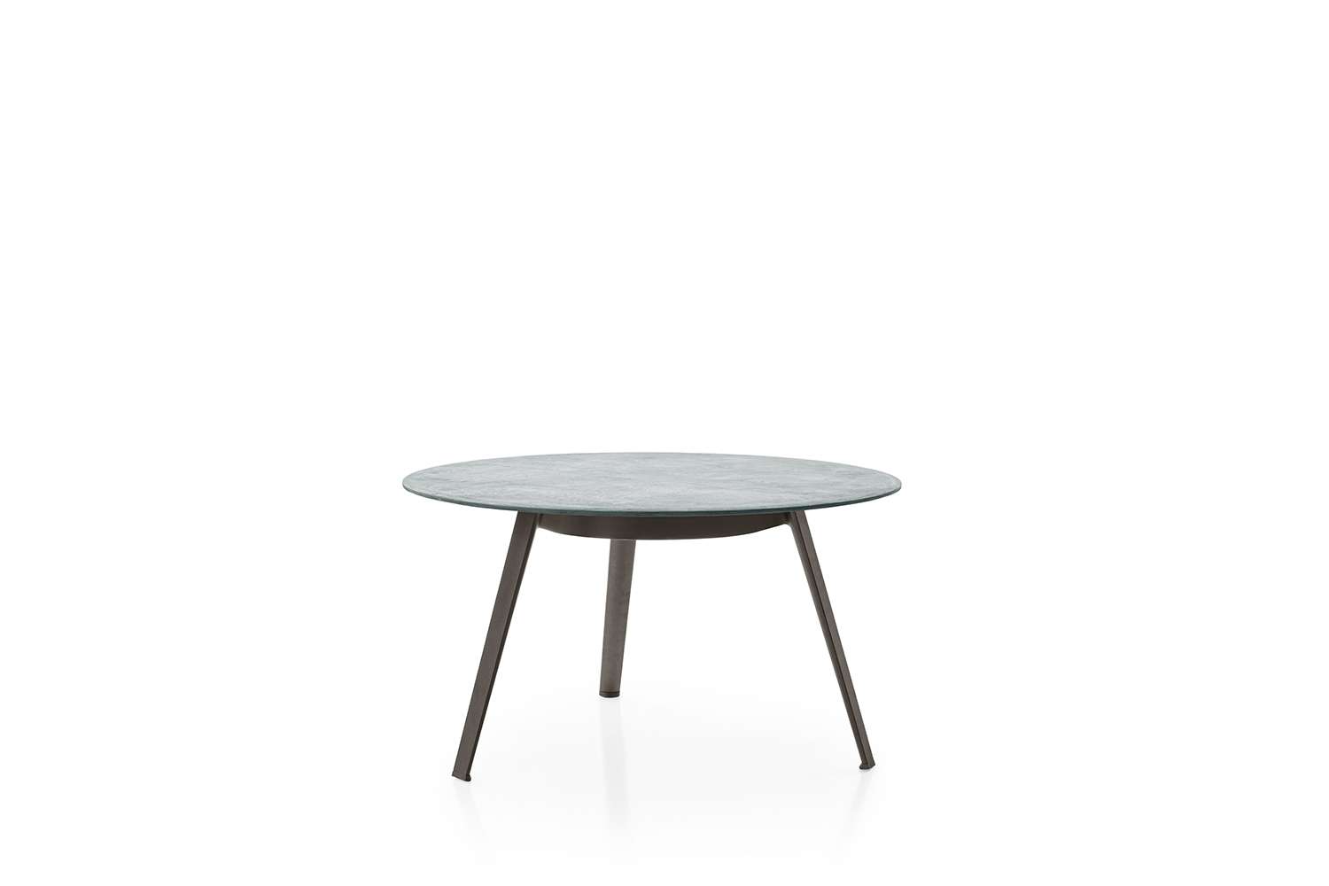 The Ginepro table is made with an anthracite painted aluminum structure and a Serpentine stone top. Extremely durable and precious as the linear and timeless style. With its two shapes (round and rectangular with rounded corners) and four dimensions, it lends itself to be placed in different outdoor enviroments: terraces, verandas, patios and gardens.
