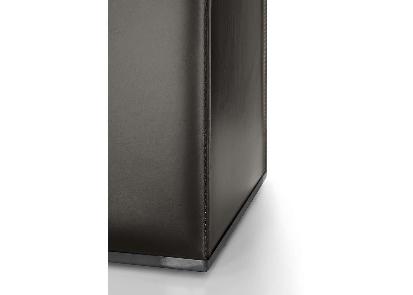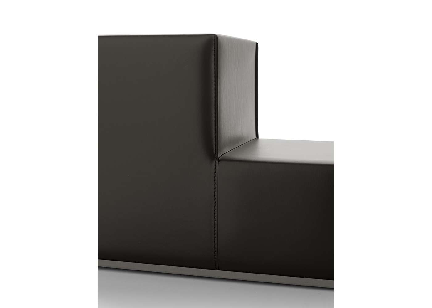 The flexible nature of Camaleonda continues and is completed by Gli Scacchi, the chess pieces, a series of accessories designed by Mario Bellini to become additional tables or seats. The three pieces that make up the series are inspired by the game of chess, in particular the queen, the knight and the rook (hence the Italian names Regina, Cavallo, Torre), light and easy to move like on a chessboard. “They are among the most playful pieces of furniture I have ever designed”, Bellini states, underlining the free and amusing spirit they bring to interiors. In the 1971’s original version, Gli Scacchi represented a remarkable technical innovation as they were produced in self skinning polyurethane foam, a solution which was initially used only by the automotive industry and introduced for the first time in furniture. The 2020 reissue offers soft covers made of thick leather or Kanu leather with visible stitching. The shape of the three elements elaborates on and develops the parallelepiped, through structures made of soft polyurethane that perfectly synchronize with the dimensions of the Camaleonda. At the base there is an elegant metallic profile, an element that defines the geometry of the shape in contrast, with the softness of the object.