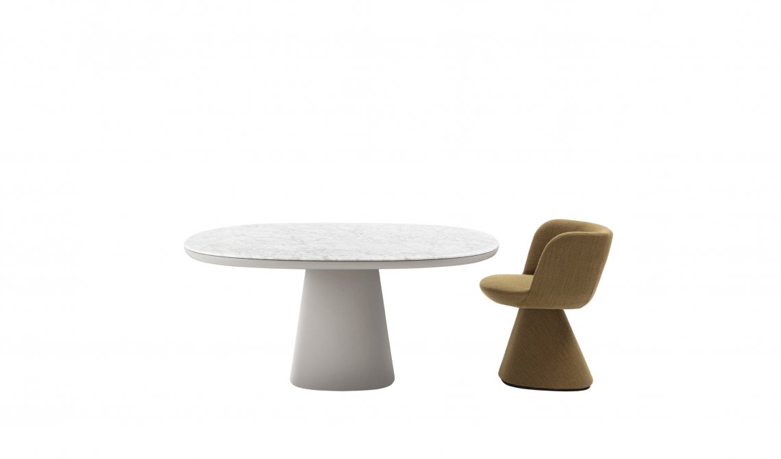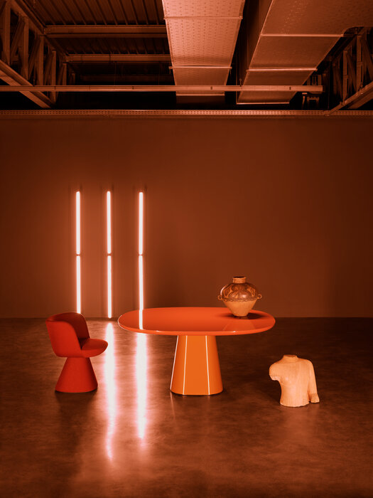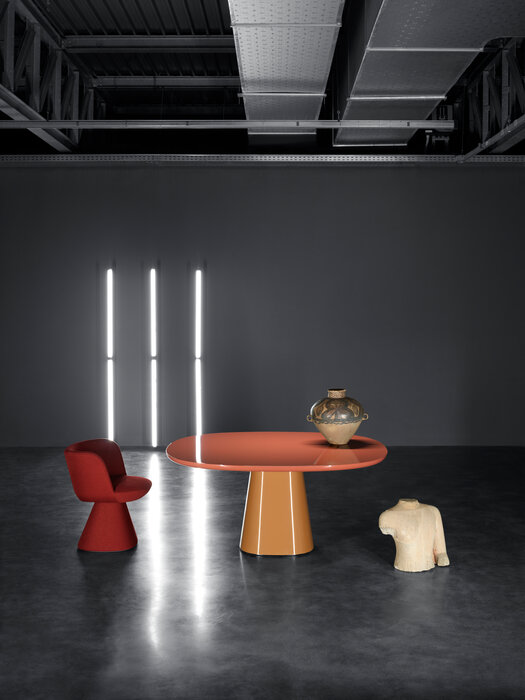 The Allure O’ table is presented as a heart-felt tribute to glamour interpreted in contemporary style. The graceful force of its design is clearly seen in the shape of the top and the balance between the control of straight lines and sinuosity of curves. In an interplay of elliptical geometric shapes that recalls the Madison mirror, designed by Monica Armani in 2017, this piece renews the reference of the shape of Jackie O’s iconic eyeglasses. Allure O’ is available with a square or rectangular top, both with bevelled edges, and each comes in two sizes to seat four, six, or even eight people. The section of the truncated pyramid base replicates the rigorous balance of the top with delicate proportions to create a level of harmony that can guarantee structural and visual stability. The finishes underscore the sophisticated elegance of the inspiring concept behind it. These pieces are available in glossy and matte painted finishes in many colours, and also in light and black oak wood. The top and base can also be finished in combinations of different colours. Furthermore, the table Allure O' can be enhanced with an upper marble top or with sophisticated glossy black glass.