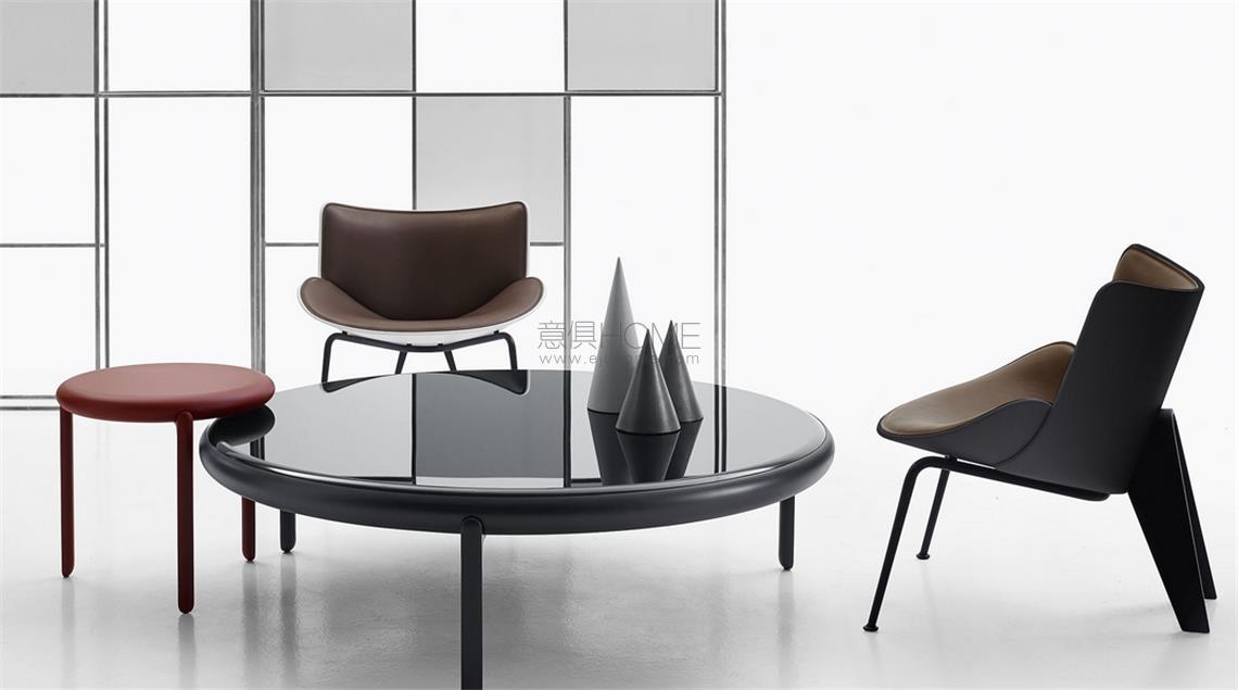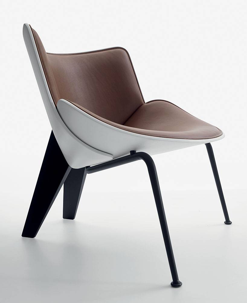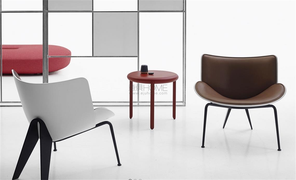 小扶手椅Do-Maru的名字源自古代日本武士穿戴的甲胄。它是由彩色、帶有裝飾物的塊狀厚皮革制成,以保護(hù)英勇戰(zhàn)士的身體。和Doshi-Levien在2014年設(shè)計(jì)的旋轉(zhuǎn)扶手椅Almora一樣,座椅的外殼也是由一些相互疊加的部分構(gòu)成的,采用可以用織物或皮革作為飾面的填充材料使其變得柔軟。鋁壓鑄件靠背支撐突出了小扶手椅的圓錐曲線,而位于前面的支撐為黑色鍍鉻或錫涂層的鋼管材料,與主體的顏色相匹配:白色、黑色和黃綠色。