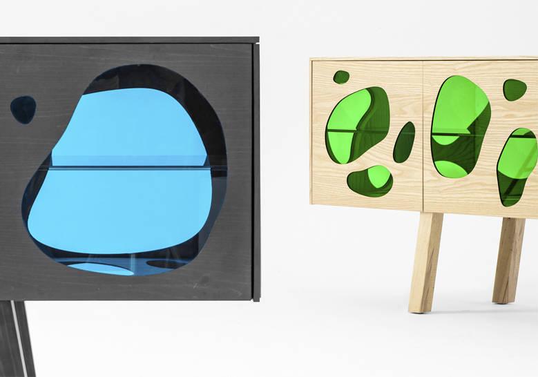 aberturas están selladas por secciones del vidrio, lo que permite ver a través del mueble. "Nos encanta