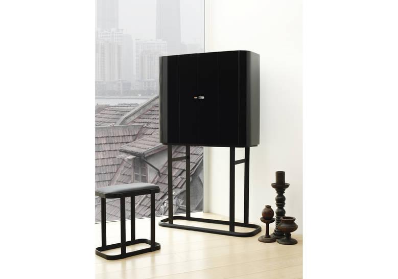 contrachapado de madera con cristales incrustados de Swarovski. El mueble incorpora cerradura.