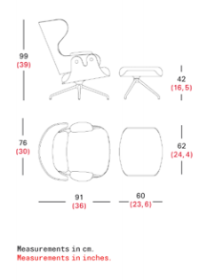 Estructura de la butaca en fundición de aluminio y pouff en tubo de acero pintado. Asiento, respaldo