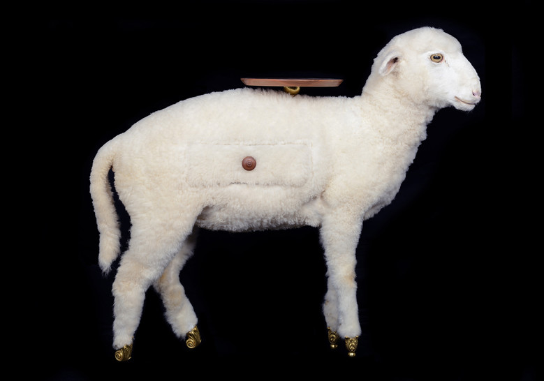 pintura “Proyecto de interpretación para un establo-biblioteca” (1942) donde aparece una mesita-oveja