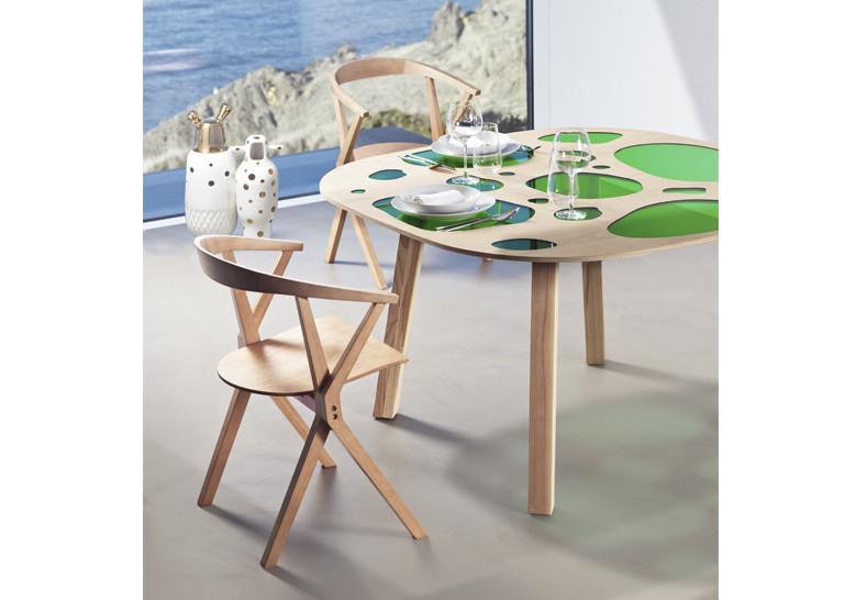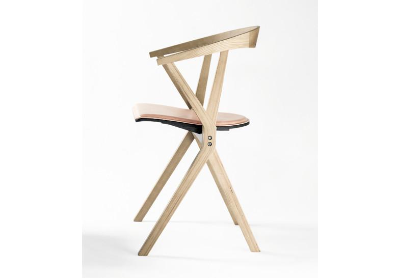Laterales y asiento en madera contrachapada con caras exteriores en fresno y respaldo en madera maciza de