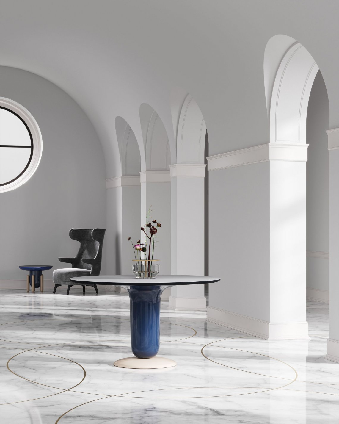 Now more than ever we spend a lot of time in our homes eating, working and sharing moments. The explorer dining table was born from the idea of inclusion, eliminating the obstacles of the table by getting rid of the side legs, trying to create a spacious and comfortable space but being sculpturally strong at the same time, an iconic piece that can be admired.