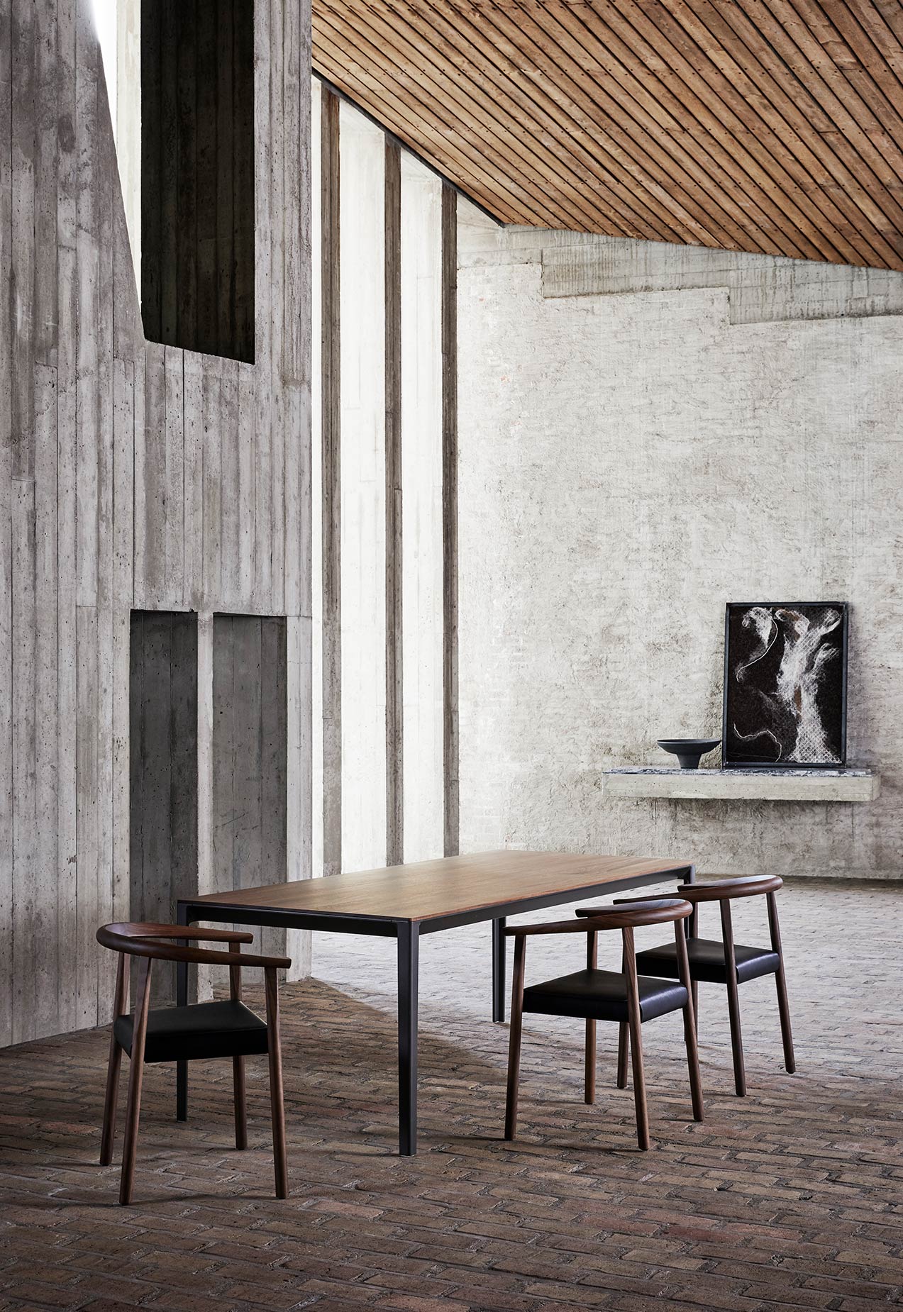 The Able collection is a family of tables that offer a variety of solutions as they are available in several sizes and materials. Cast aluminium legs and aluminium rails support tops in wood, marble and Polaris.