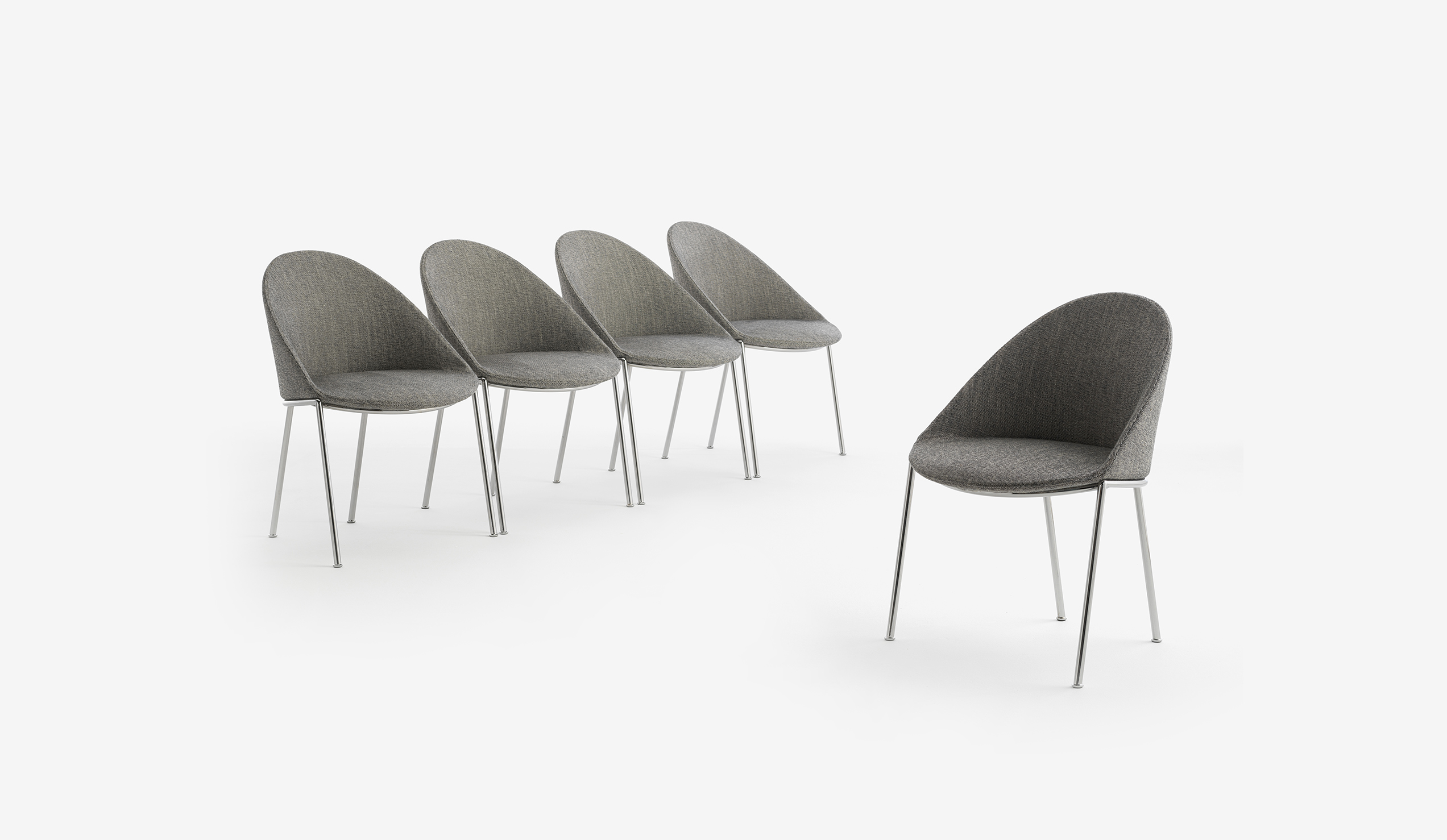Simple curves compose the backrest perimeter and waterfall front edge of the Circa dining chair. Finely crafted upholstery augments the graceful form with a tailored appearance.