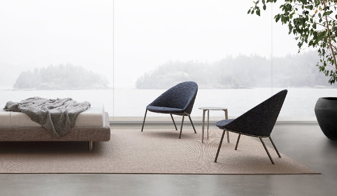 The flowing organic shape envelops the body and provides comfort within a small footprint. A responsive webbing seat is concealed within the formed foam and cradles the user.