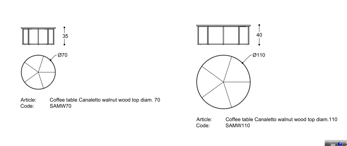 Tavolini tondi con struttura in metallo finitura bronzo scuro opaco. Top in MDF impiallacciato in noce Canaletto,