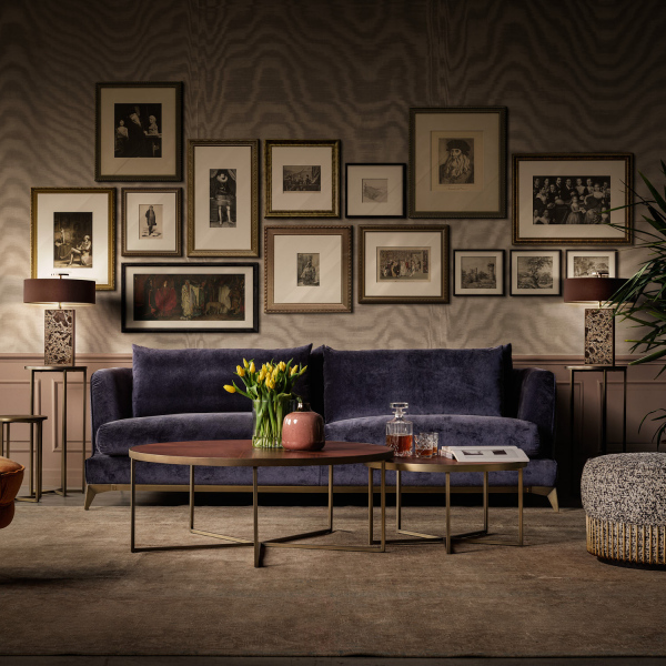 in thermo-bonded fibre with stretch jersey. Metal element in polished gold finishing, base in black laquered MDF.