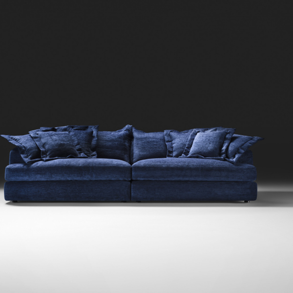 polyurethane foam, upholstery in thermo-bonded fibre with stretch jersey. Seat cushions in 100% European, channelled