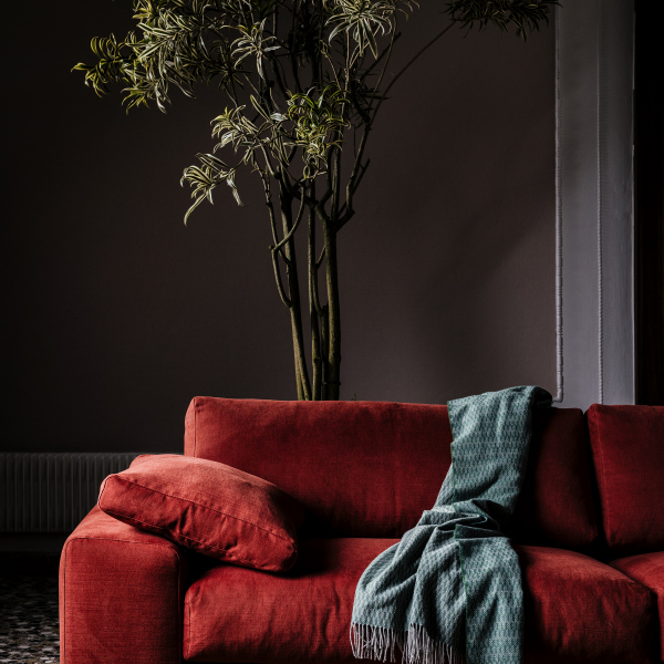 expanded polyurethane, upholstery in thermo-bonded fibre with stretch jersey. Seat cushions in 100% European