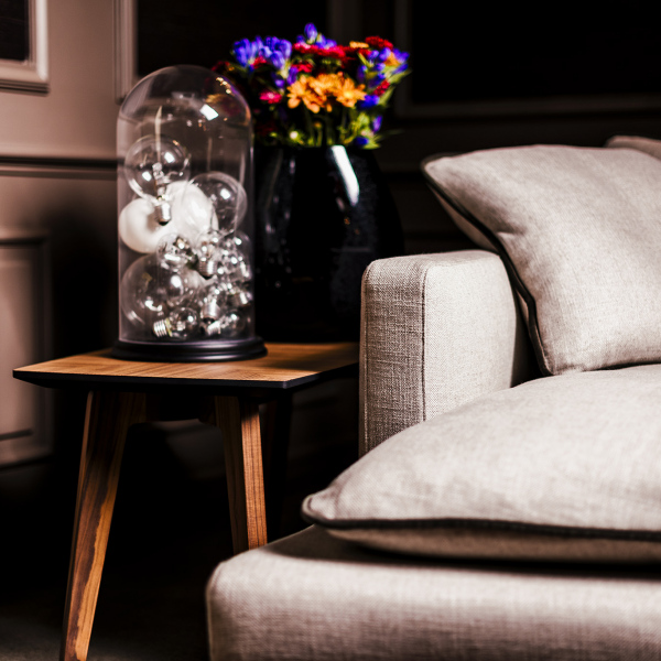 with central insert in memory foam. Fully removable fabric covers, only the cushion for the leather version. Feet matt