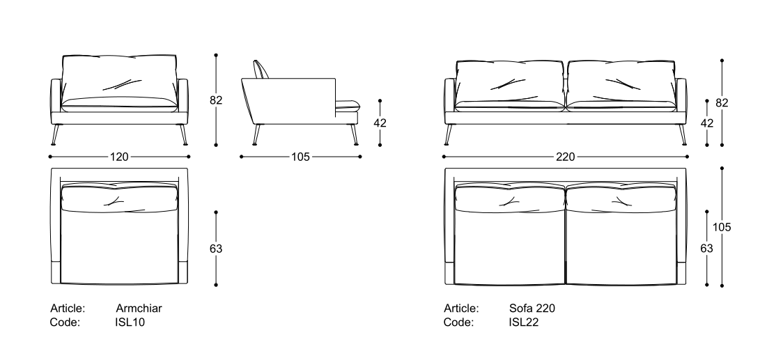 accoppiata a maglina elastica. Cuscini seduta e schienale in 100% piuma d’oca di provenienza europea, 10%