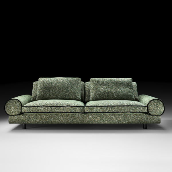foam, upholstery in thermo-bonded fibre with stretch jersey. Seat cushions in 100% European, 10% down, channelled