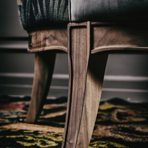 Poltrona con struttura in legno di faggio, con molleggio a nastri elastici intrecciati. Imbottitura struttura in poliuretano