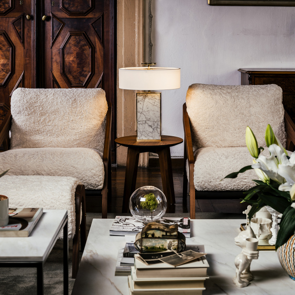 details in polished gold finishing. Fully removable covers, in both fabric and leather.