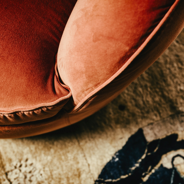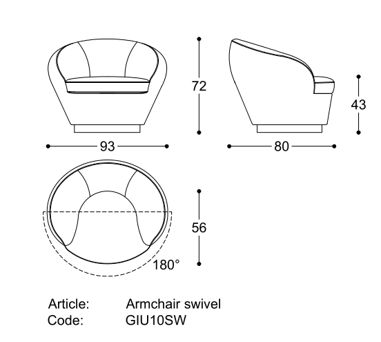 Swivel base (90° left and 90° right with return). Removable cover only the cushions.