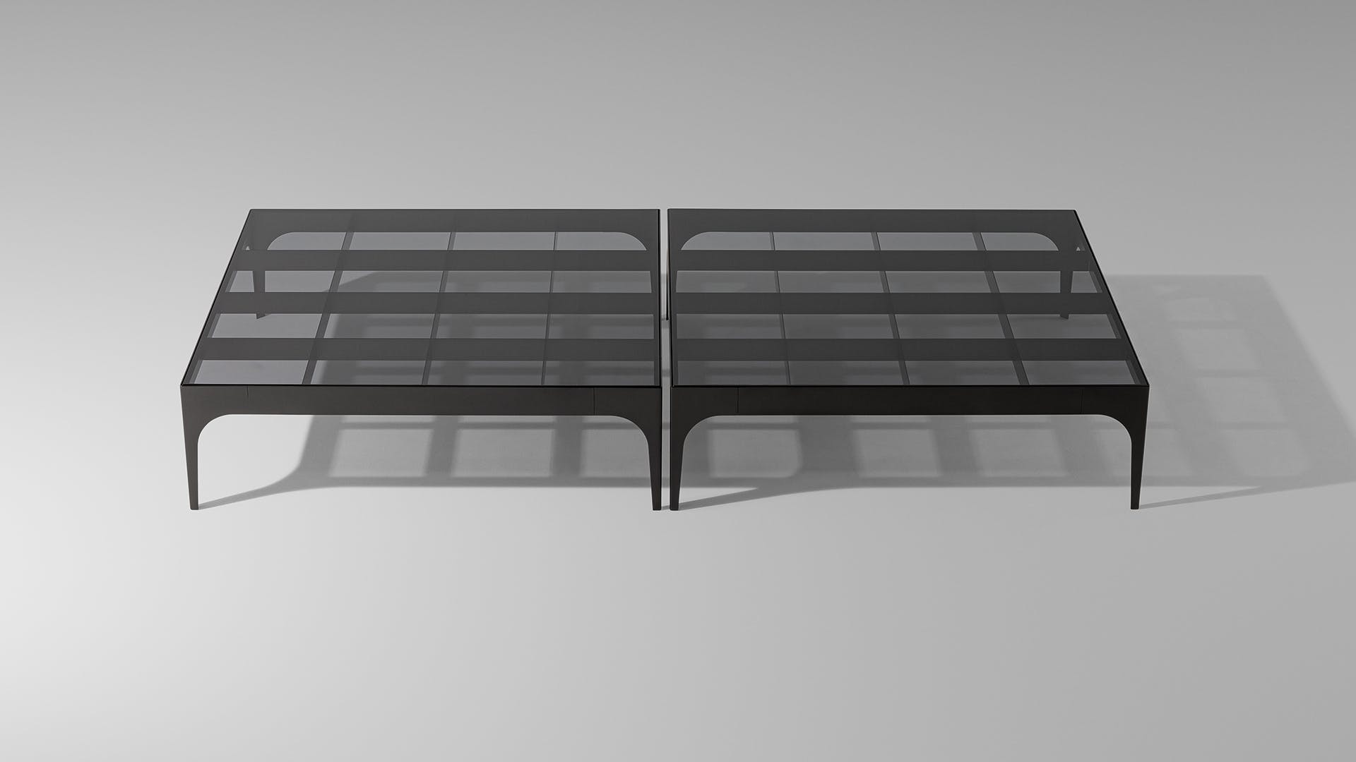 The style of the designer glass coffee tables designed by Fabrice Berrux sums up a discreet elegance that is both structural and functional at the same time while drawing attention to a number of sophisticated details, most noticeably, the metal “chess board” structure that can be glimpsed under the glass top. The designer glass coffee table is available in different formats including square, rectangular and circular, which allow you to create countless furnishing solutions and combinations.