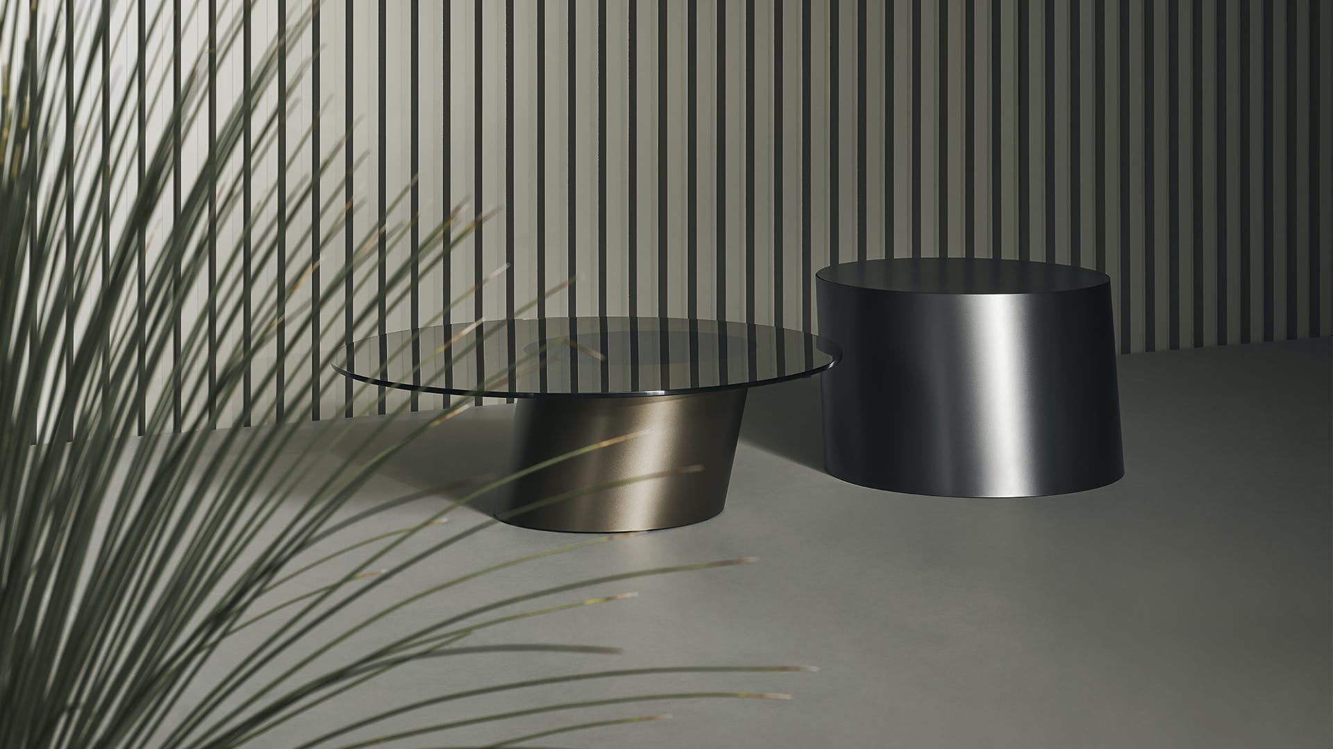 The Pisa coffee tables, designed by Mauro Lipparini, are furnishing accessories with a strong character, thanks to the monolithic design of their bases. Available in the single block version with a recessed or cap-like top, the signature feature is the angle of the base which leans diagonally like the tower after which they are named. Metal, used for the base, is the common thread running through the collection: the minimal decor coffee table assumes its own identity based on the material used for the top, available in ceramic, glass, marble or metal in the same finish as the base.