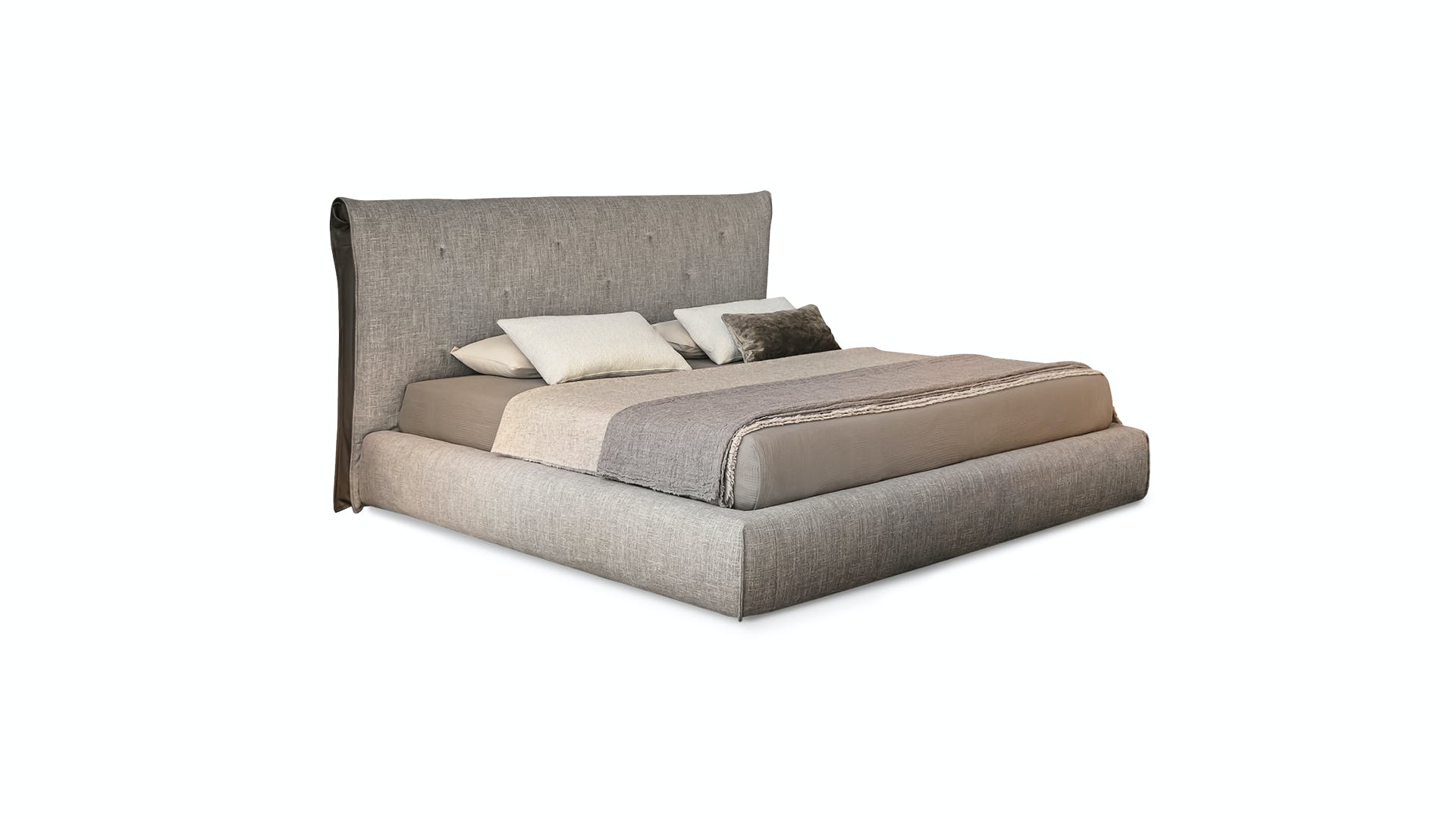 The high upholstered headboard and bed frame are the distinctive elements of the Saddle bed: folded over themselves, they bring to mind the form of a saddle, which gives the name to this family. The characteristic features of the bed’s headboard are the quilting and the valuable leather inserts which are also found in the bed frame. This allows a singular interplay of materials and combinations that create an appealing optical effect and emphasize the extreme attention to detail. The figure of the bed is made even lighter by the feet in painted metal available in numerous finishes. Alternatively, it is possible to choose among other different versions: the Saddle bed hi with an even higher headboard, the Saddle bed plus with a thicker bed frame and low feet, and the Saddle bed hi plus, which combines these two variants. The modern high headboard beds are also available with storage (Saddle bed open and Saddle bed hi open) and the collection is completed by the Saddle bench with its shaped legs.