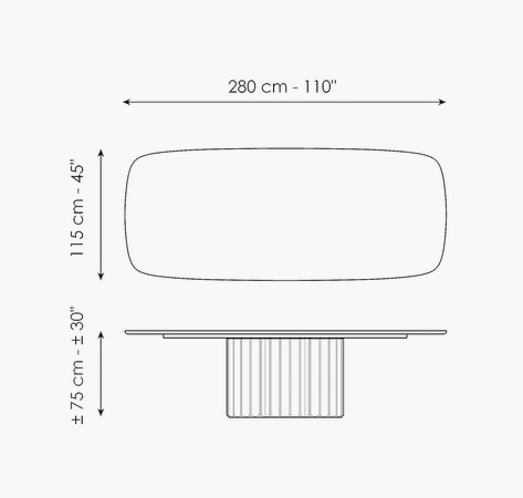 In the Dorian modern oval dining table, flexible qualities and geometric simplicity establish an interplay through contrast. The large top - made of ceramic, marble or wood - rests on a base with a striking sculptural character, consisting of an elegant and surprising elongated cylinder that recalls the shape of a Greek column and which pushes the design towards ancient architectural horizons.