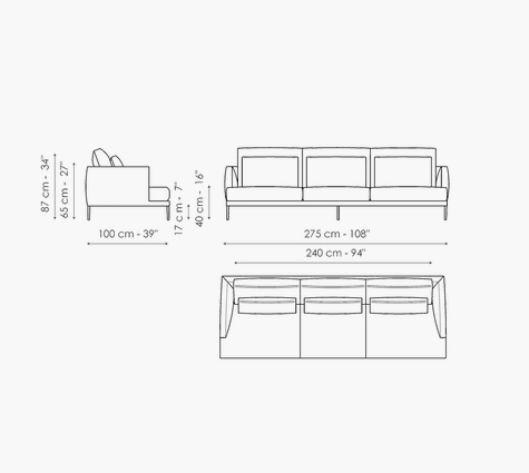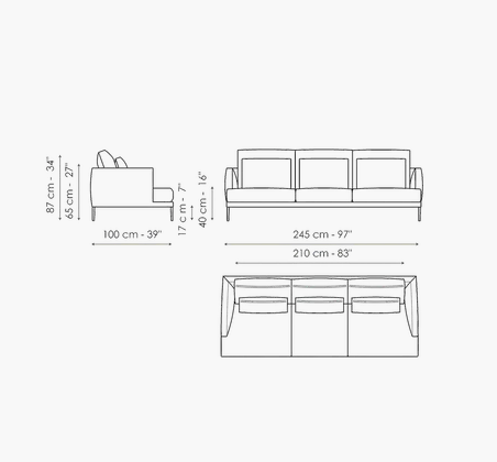 A classic design kind of sofa with a simple, essential and elegant taste, which, thanks to its balanced volumes, adapts to a variety of environments, sizes and styles and makes it possible to use the spaces in the best possible way. The Paraiso classic designer sofa with removable upholstery in fabric or leather, is available in numerous versions: in addition to the linear sofa, it is indeed possible to create solutions with a chaise longue or corners, or combining comfortable poufs, fully satisfying different tastes and needs for comfort. Particular care has also been used in the internal parts of the sofa: the feet can be in painted metal or upholstered in Capri leather.
