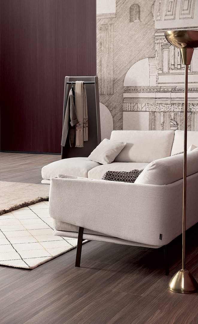 The Structure Sofa emerged from the idea of playing with the structure of a classic sofa, to reveal an inside that is softer and to create a dynamic movement between the seat and the backrest. The metal core is in some places visible, in others it is partially hidden, giving it an entirely informal look. The colours of the metal frame can in fact be chosen tone-on-tone or in contrast to the upholstery, thus creating an unexpected visual effect. The upholstery, in fabric or leather, is fully removable. The leather or fabric Structure Sofa allows maximum modularity, thanks to the numerous elements, which make it possible to create, in addition to the linear sofa, solutions with chaise longue or corners, combining comfortable poufs or coordinated armchairs. Its innovative design is particularly admired, and has brought it awards and recognition, including the Henry Van de Velde Label.