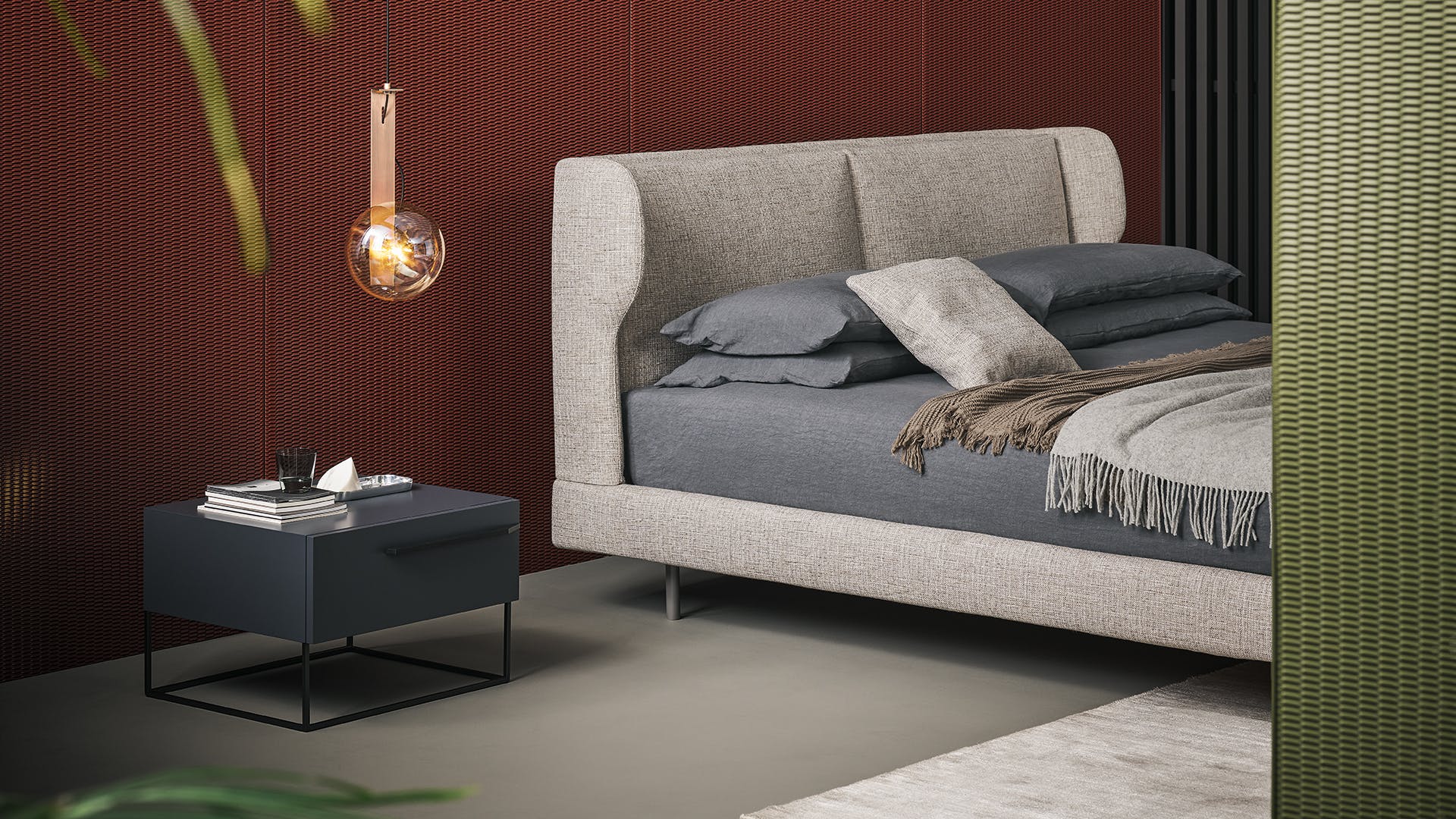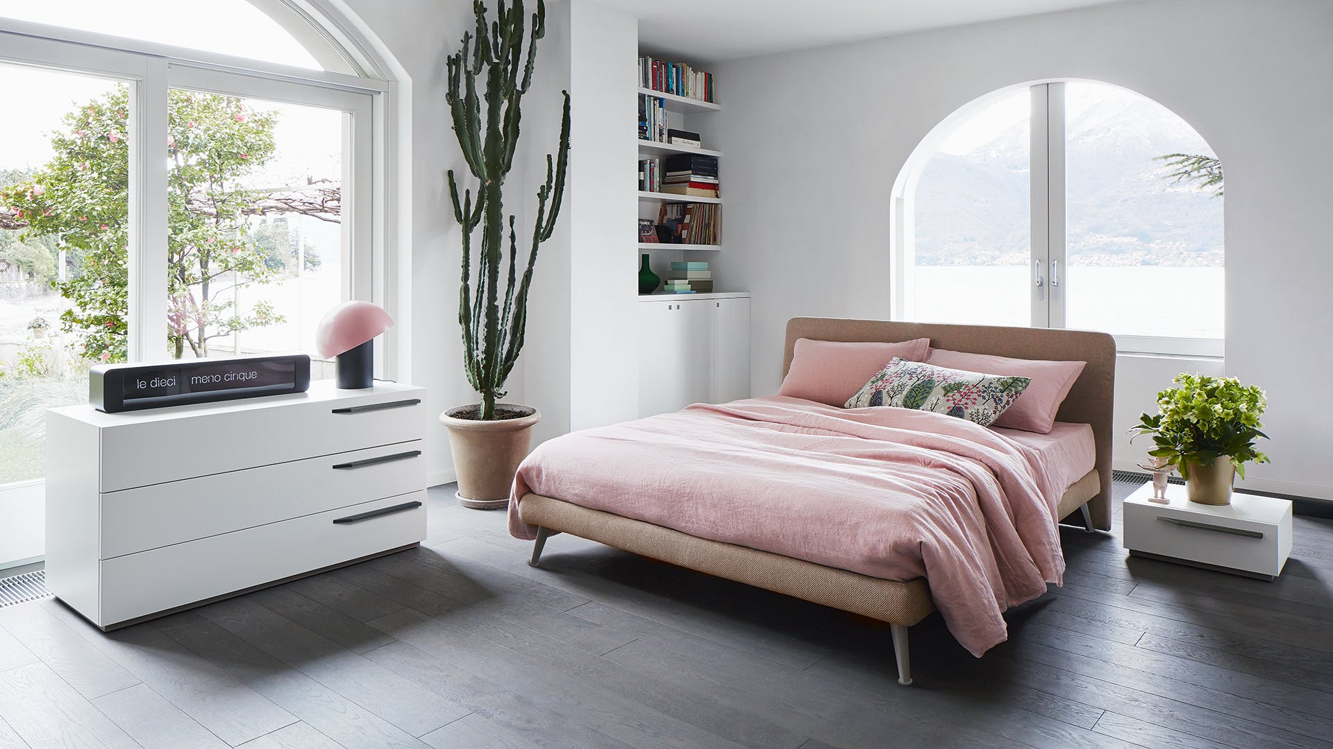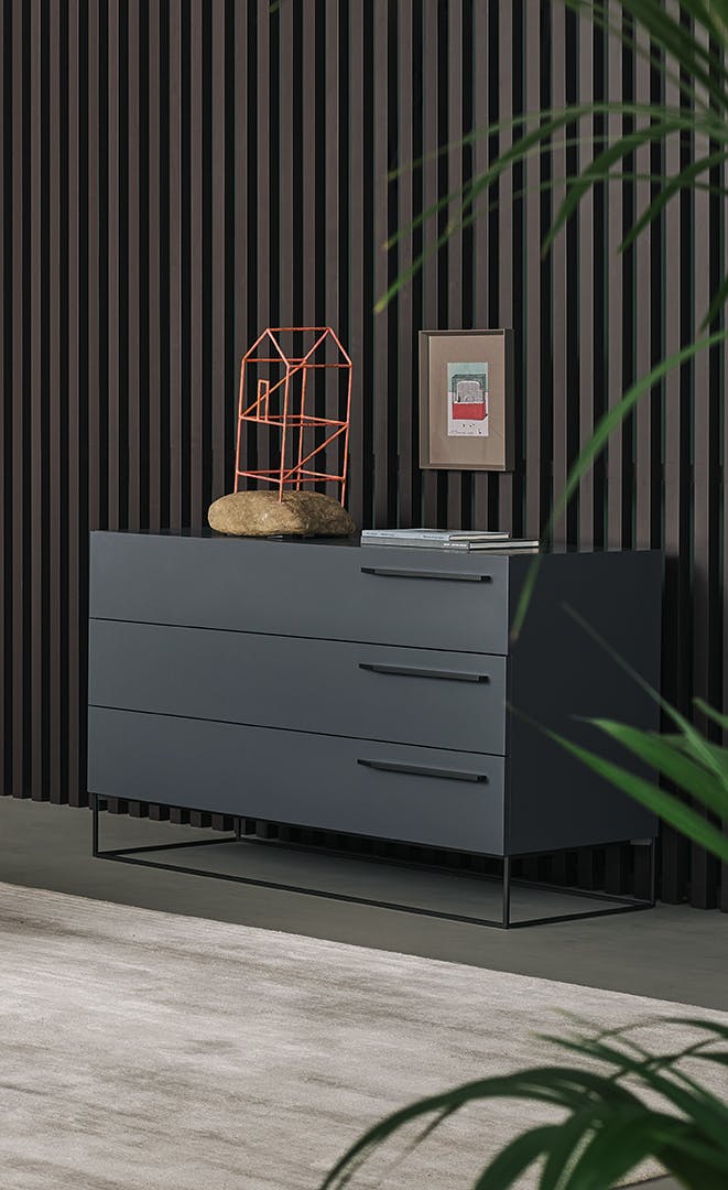 A collection of furnishings for the bedroom, with the capacity “to be”, rather than simply to appear, perfectly at ease in settings with different aesthetics. To Be is a collection of cool bedroom accessories consisting of a drawer chest, a bedside table and a highboy that creates an organic design in the bedroom. The structural and formal lightness is derived from two design factors: strict geometric shapes and the choice of the painted metal base, which slims down the unit through a principle of volume subtraction. The To Be accessories for bedroom feature a matt lacquered wooden structure, available in three different colours (white, anthracite grey and dove grey), making it possible to satisfy a variety of tastes as well as facilitate interesting combinations with the shades of the painted metal base. The metal handles with a matching ?nish are a continuous feature shared throughout the entire collection. Besides the multiple customisation options, there is also the possibility of having a plinth base version, available in numerous metallic colours which can be mixed or matched with the lacquered wood structure. With great attention to detail in each design, any combination can create a modern, sophisticated atmosphere.