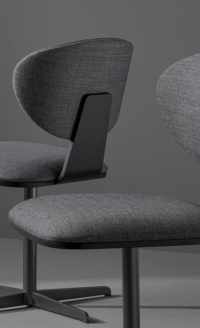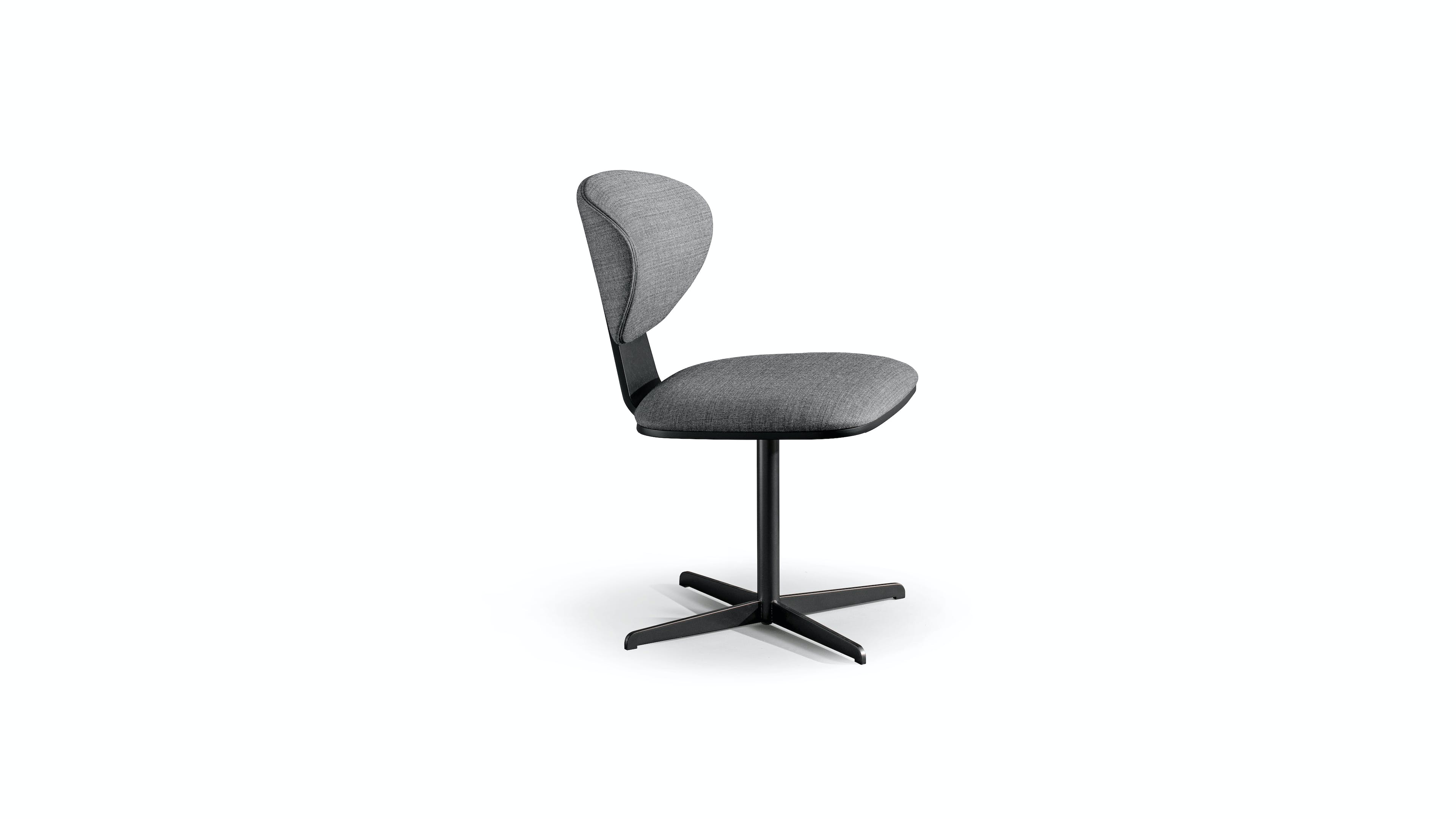 The Olos Office office chair, with a cross-shaped metal base and swivel seat, is characterized by its sinuous and essential design. The harmoniously curved laminated wood shell and ergonomically molded polyurethane seat combine comfort of form and balance of proportions. Inspired by Nordic design, Olos Office has a refined and versatile style, allowing it to be placed in home or office settings.