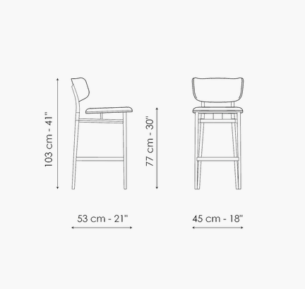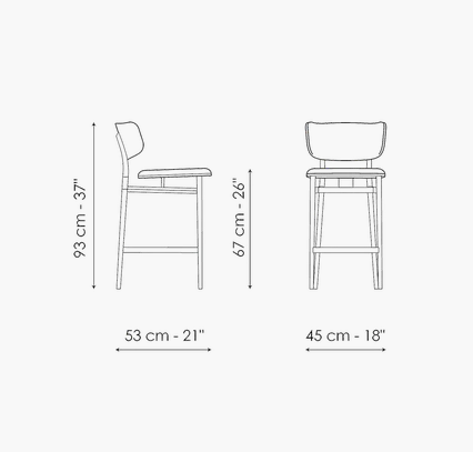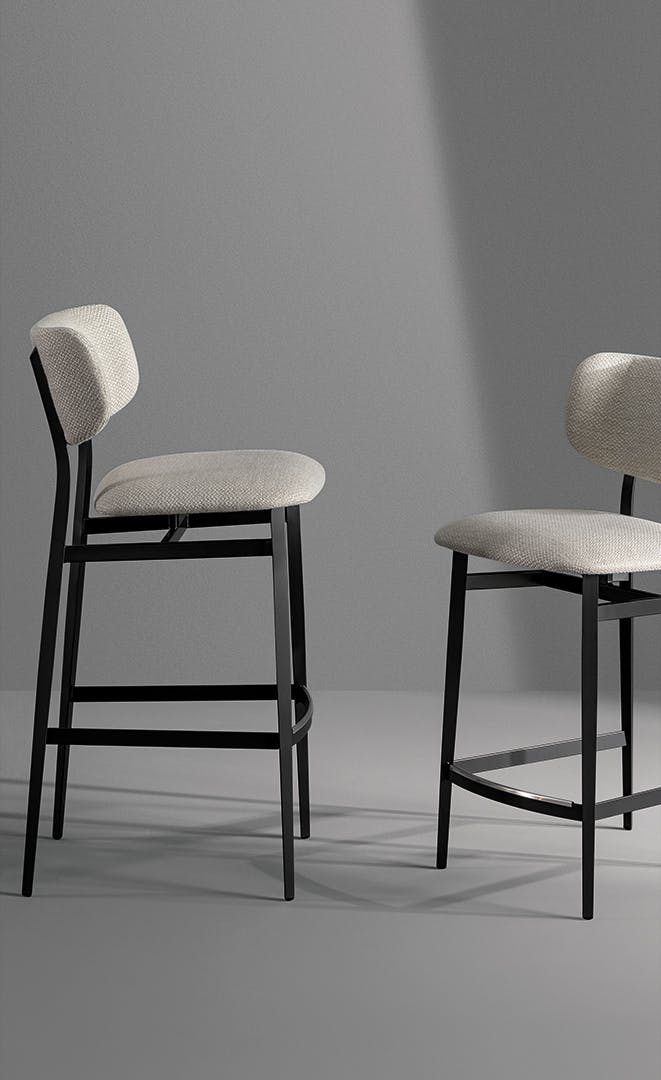 Notable for its slender and subtle shape, the Noor too upholstered stool is the result of a decision to highlight the shapes and enhance the comfort qualities of the padded sections which are mounted on the linear steel frame. The project is highlighted by the design of the cantilevered seat and backrest which although supported by the linear steel structure, seem almost suspended in the void. The large padded sections are designed to offer the body comfort while sitting along with freedom of movement. Noor too is available in different finishes, colours and materials, starting with leather, eco-leather or fabric upholstery.