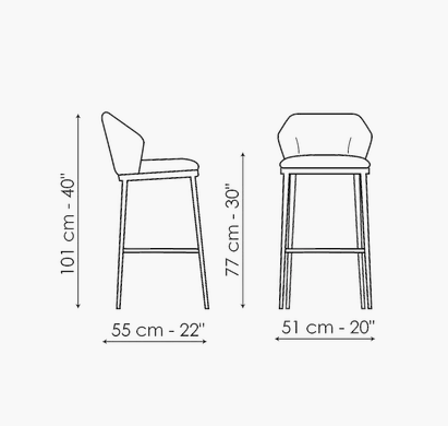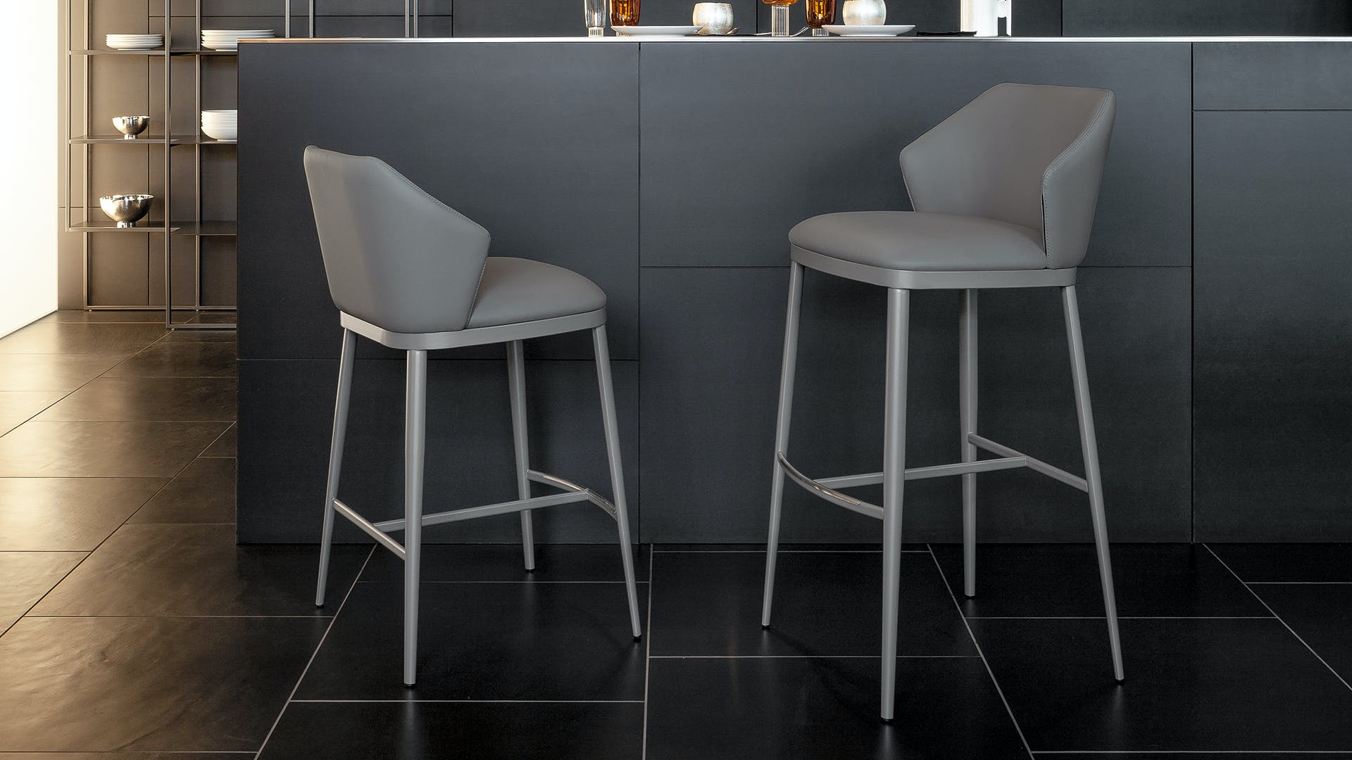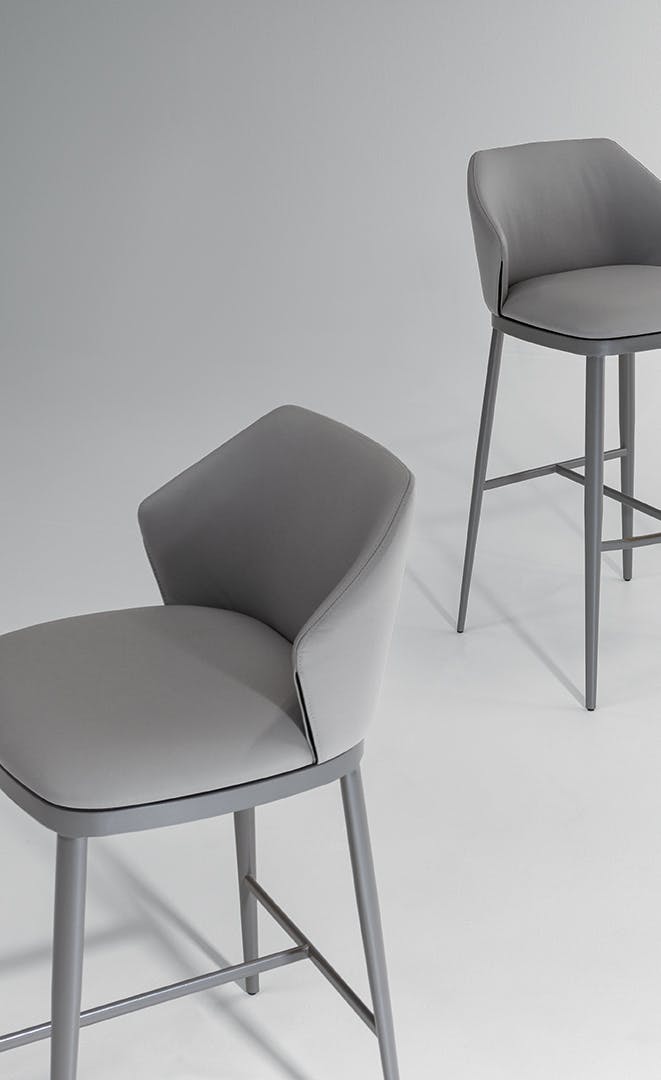The Mida collection is named after the mythical King Midas who turned everything he touched into gold. Similarly, the Mida too bar stool with armrest adds a touch of style to any space, featuring a backrest with a generous, enveloping shape and a metal base that gives the structure a harmonious design. The soft padding of the seat and backrest, combined with the exquisite upholstery offered by Bonaldo, make Mida too the perfect element in front of a bar top. The Mida collection includes a chair (Mida), a chair with armrests (Miss Mida), a version with a wider seat (Mida large) and a stool (Mida too) in two different heights.