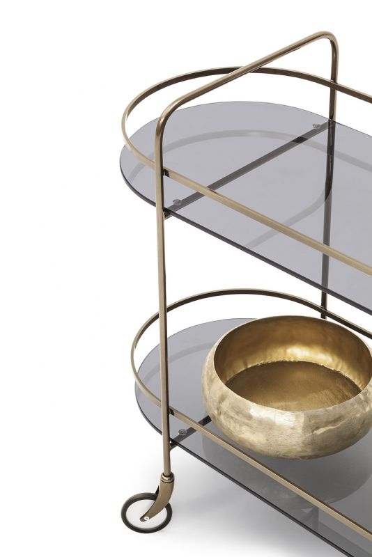 Food trolley on wheels with metal frame, top in glossy glass, matt anti-scratch glass or SuperMarble