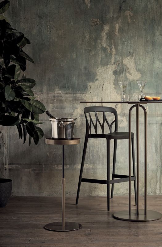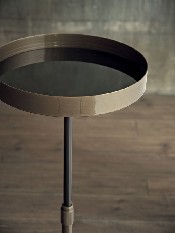 Coffee table with lacquered Metal frame. Decorative details (feet and frame) in lacquered Metal. Top in glossy glass, Velvet matt anti-scratch glass and SuperMarble. Inside column glossy black.