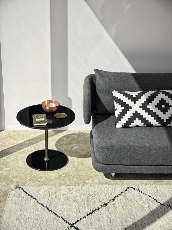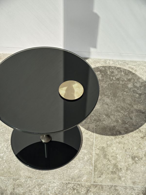 Tavolino con struttura in Acciaio, base e piano in Cristallo.