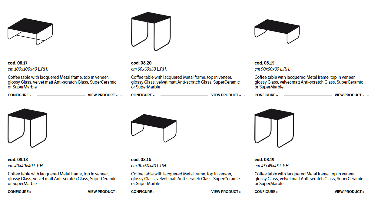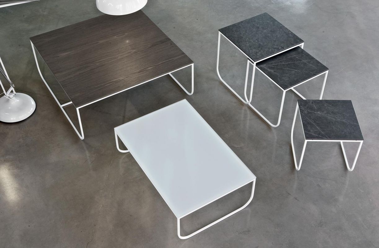 Coffee table with lacquered Metal frame, top in veneer, glossy Glass, velvet matt Anti-scratch Glass, SuperCeramic or SuperMarble.