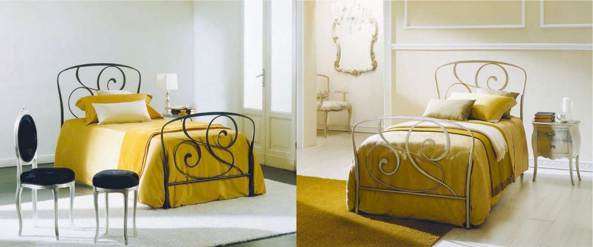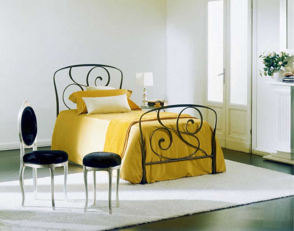 Iron bed in lacquered or hand-coated metal frame, in single version, with foorboard, bed ring or storage unit.