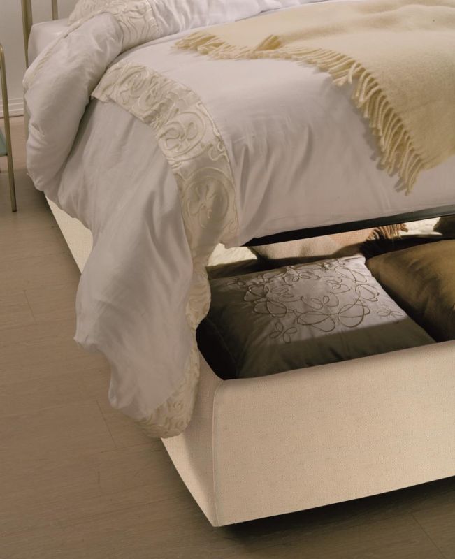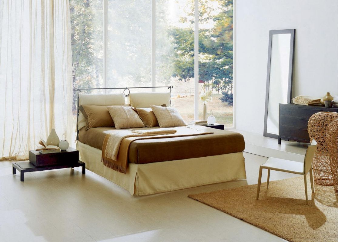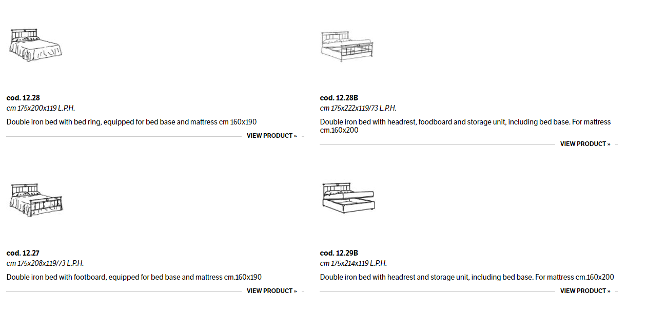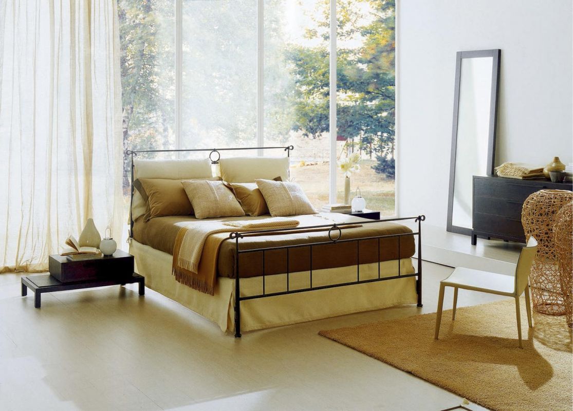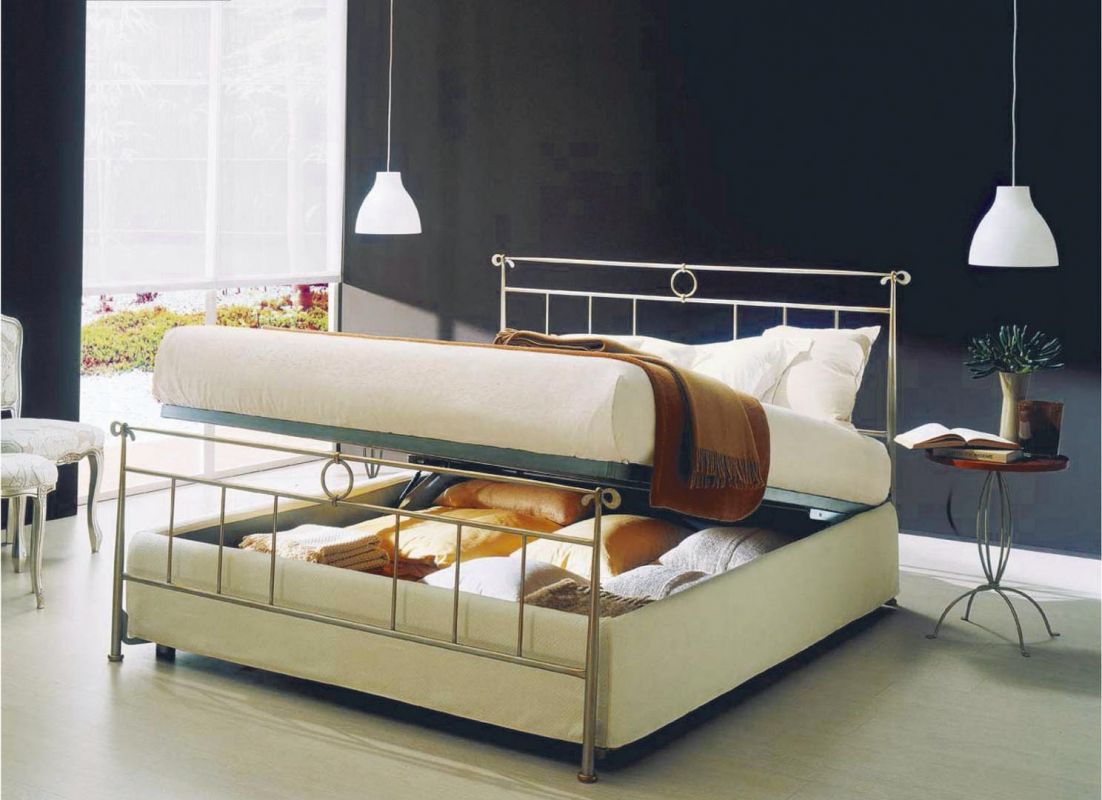 Iron bed in lacquered or hand-coated metal frame, in double version, with footboard, bed ring or storage unit.