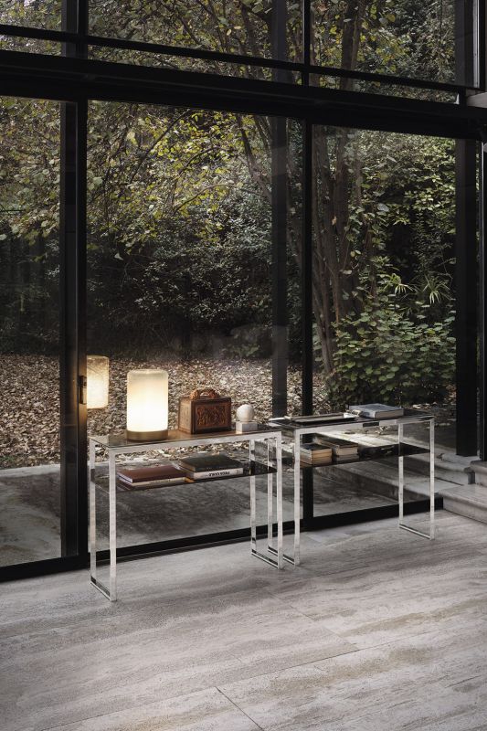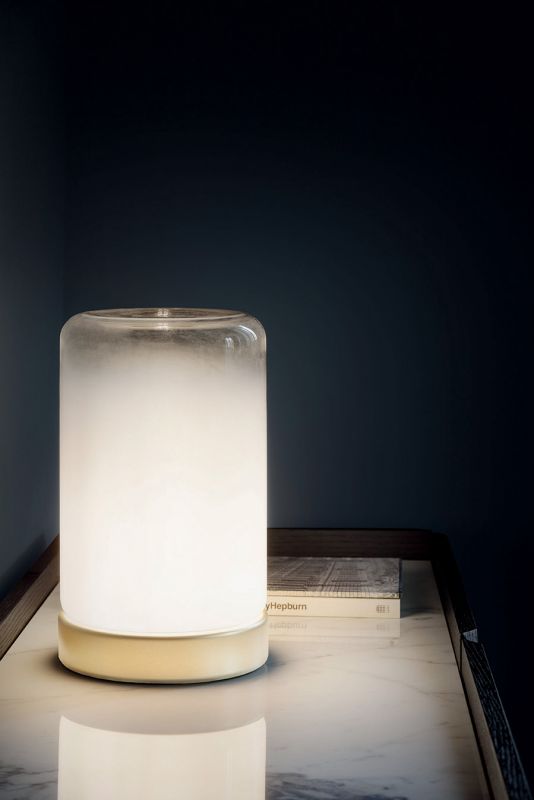 Table lamp floating glass white nuanced. Lacquered metal base.