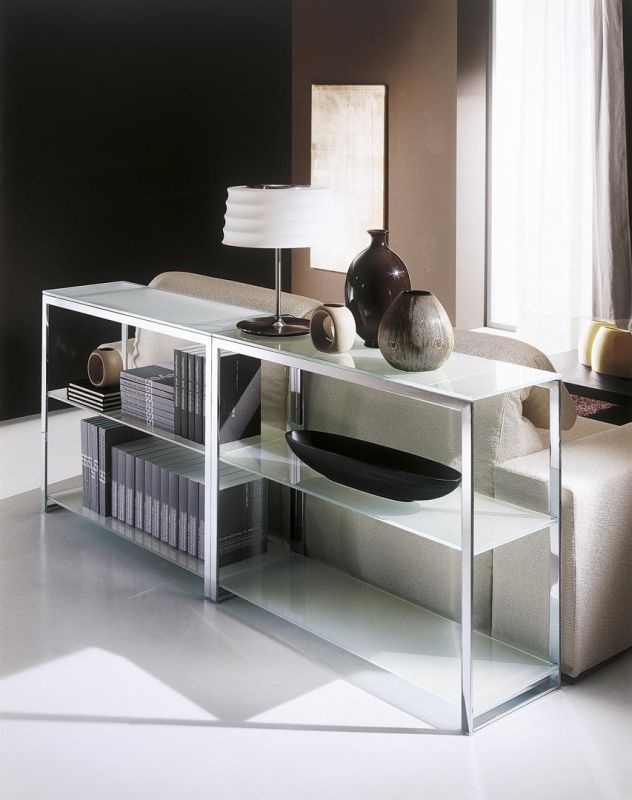 Bookshelves with metal frame, top in glossy glass or velvet matt anti-scratch glass.