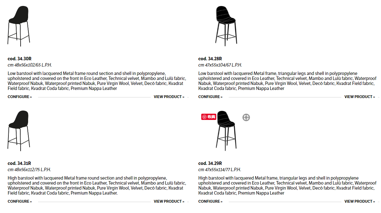 Barstool with lacquered Metal frame, triangular legs and round section. Shell in polypropylene upholstered and covered on the front in Eco Leather, Technical velvet, Mambo and Lulù fabric, Waterproof Nabuk, Waterproof printed Nabuk, Pure Virgin Wool, Velvet, Decò fabric, Kvadrat Field fabric, Kvadrat Coda fabric, Premium Nappa Leather