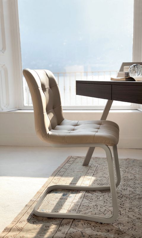 Chair with solid Wood or Metal frame. Shell upholstered and quilted.