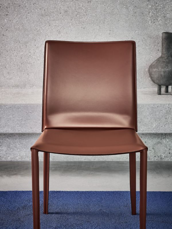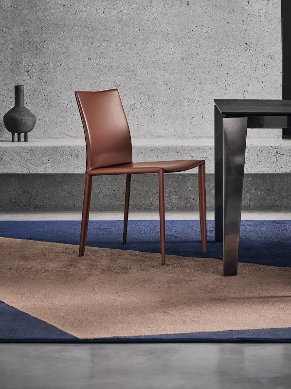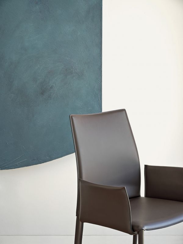 Chair and armchair with metal frame, completely padded and upholstered.