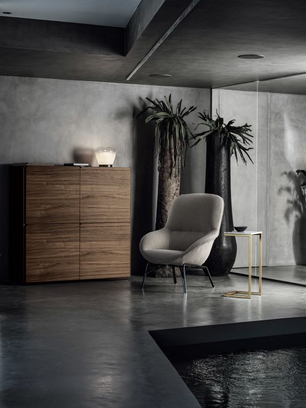 Armchair with three different frames, shell with metal insert, upholstered in foamed polyurethane and covered in Eco Leather, Technical velvet,Mambo and Lulù fabric, Waterproof Nabuk, Waterproof printed Nabuk, Pure Virgin Wool, Velvet, Decò fabric, Kvadrat field and Kvadrat Coda fabric, Premium Nappa Leather.