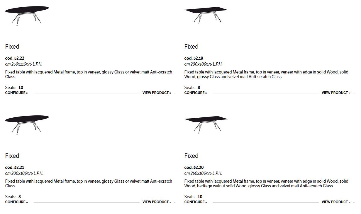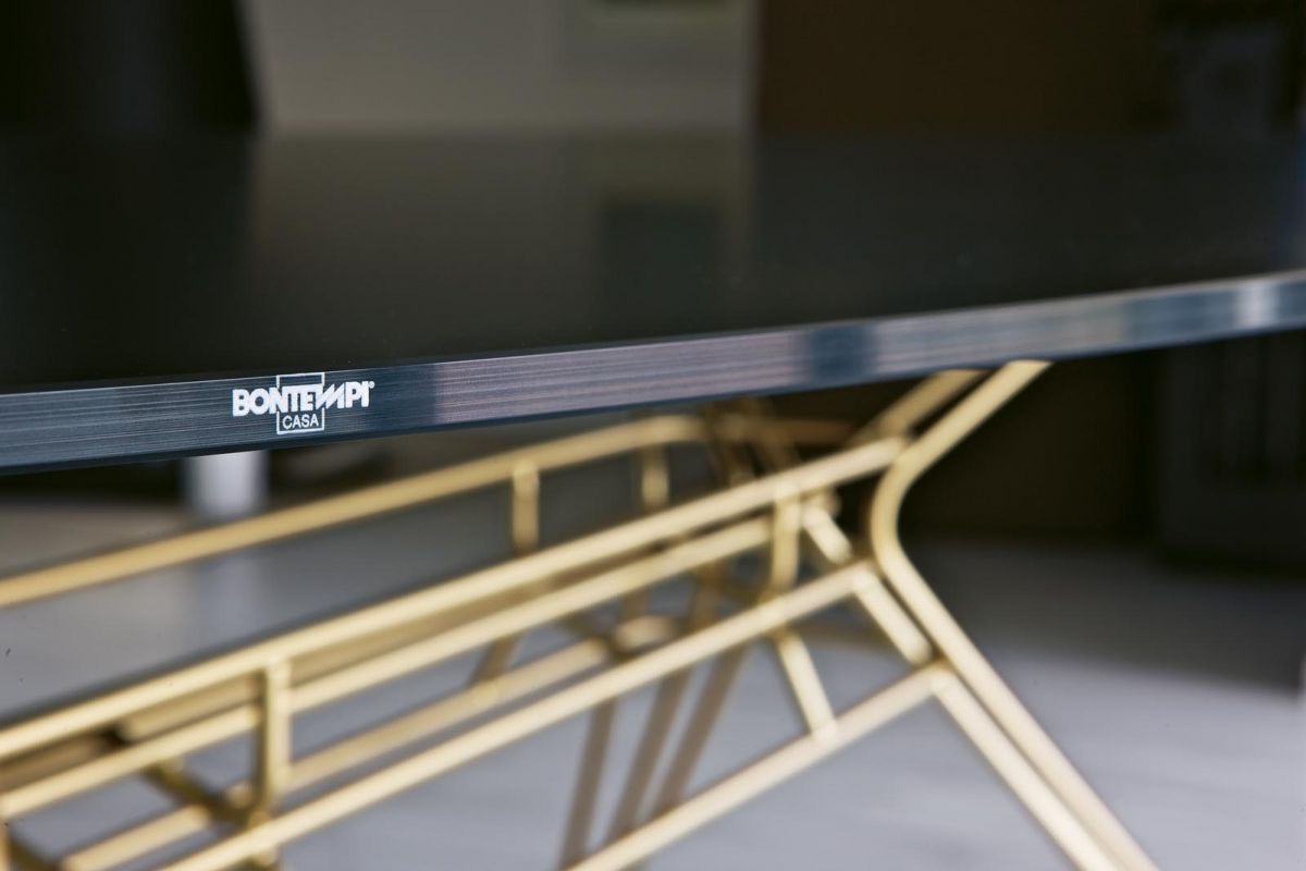 Rectangular or elliptical fixed table with lacquered Metal frame. Top in heritage walnut solid Wood, solid Wood, veneer with edge in solid Wood, veneer, glossy Glass, velvet matt Anti-scratch lacquered Glass or SuperMarble.