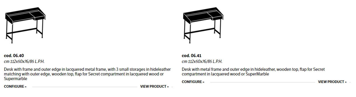 Desk with frame and outer edge in lacquered metal frame or outer edge in hideleather, with 3 small storages in hideleather matching with outer edge, wooden top, flap for Secret compartment in lacquered wood or Supermarble