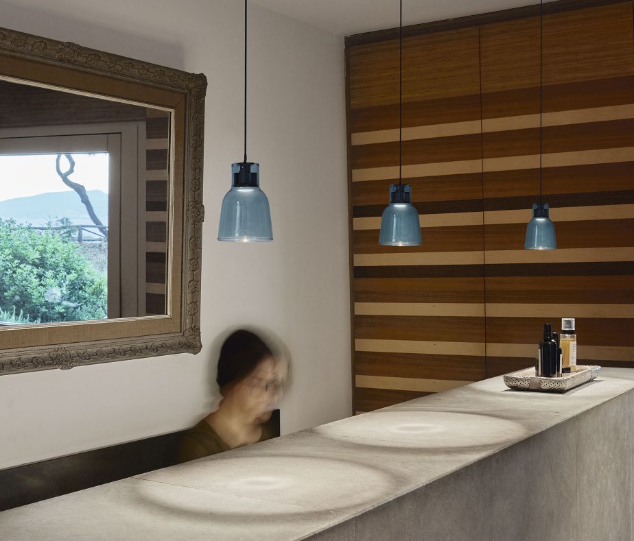 The Drip takes the diversification of the Drop to the next level. The Drip has the Drop's structure but has a personality all of its own. It is a lighting system that not only evolves into various product types (wall lights, table lamps, floor lamps with USB connection, among others), but also into other lampshade concepts. The new shade of the Drip gives one the impression of being in the presence of a completely different lamp from the Drop. It embodies the Drip's spirit; simple, minimalist and with straight lines. The Drip's small lampshade is also made from borosilicate glass, giving it a fine, delicate aesthetic. The choice of glass is closely linked to the light it casts, which is bright, but intimate. It creates ambiance while being highly practical for anyone nearby. "I always keep in mind the space a lamp will be placed in because that is where it has meaning," explains Christophe. The design and function of the Drip and Drop fit perfectly into residential projects and contracting work. Because it can be applied in many ways, it works very well in hotels, both in common spaces and in rooms.